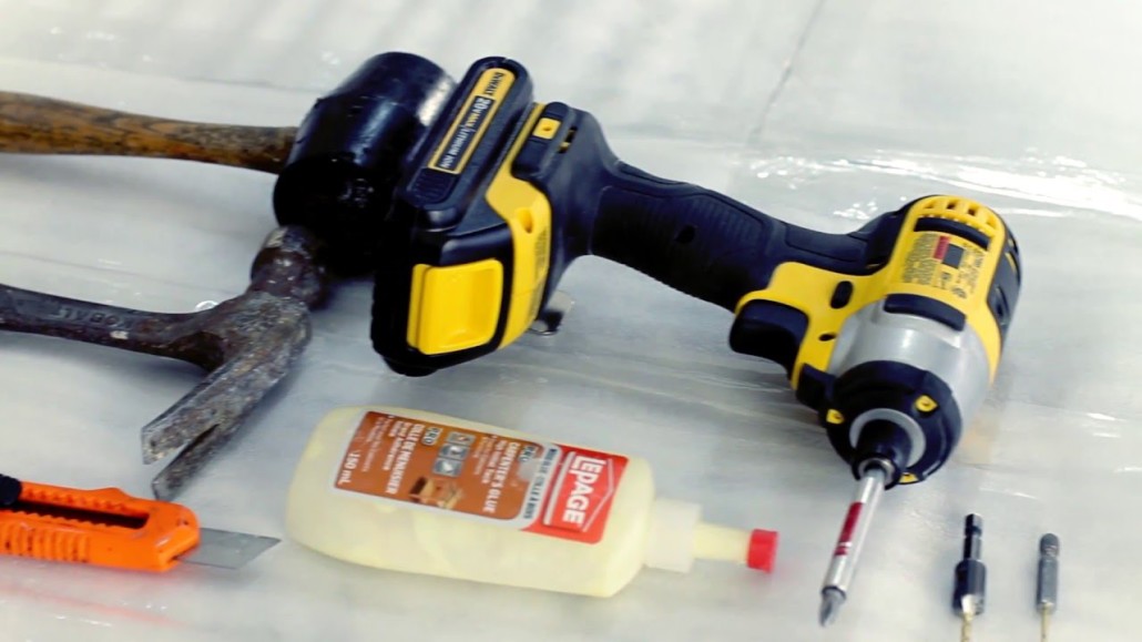Before beginning with the installation, you will need a few basic tools. Keep a rubber mallet, wood glue, a Philips 32 screwdriver and a drill handy.